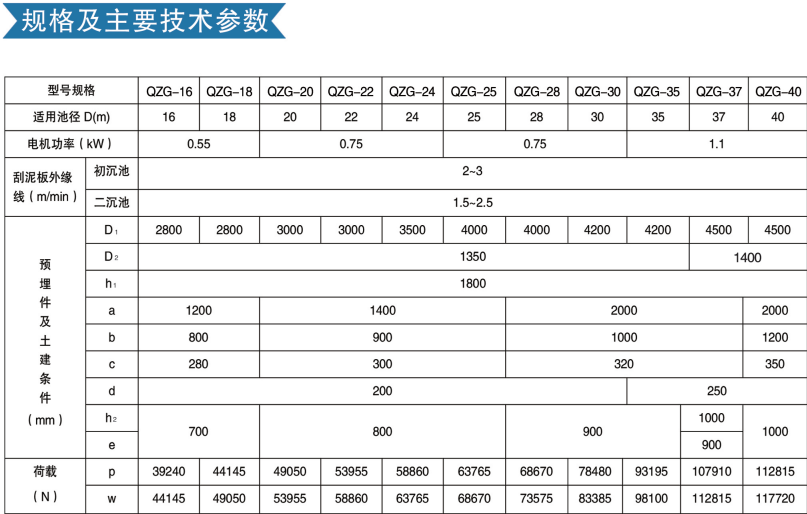 原水从池底经中心支墩上部流出,并经导流筒配水后,呈辐射流向池子周边集水槽出水,随着辐向流速的降低,原水中的悬浮物被分离而沉降于池底。旋转桁架以中心支承为圆心,端部走轮在驱动装置的作用下,沿池周作回转运行,带动下部刮泥板缓慢转动,刮集至沉淀池中心集泥槽,依靠静水压或泵排出池外,上部浮渣由刮渣板同步刮至排渣斗排出。