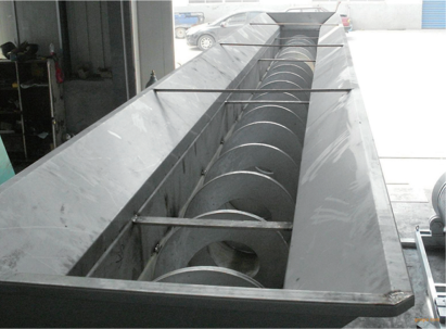 螺旋输送机一般分为有轴、无轴,有轴螺旋输送机由螺杆、U型槽盖板、进、出料口和驱动装置组成,而无轴螺旋输送机则把螺杆改为无轴螺旋,并在U型槽内装有可换衬体,结构简单,物料由进口输入,经螺旋推动后由出口输出,整个传输过程可在一个密封的槽中进行,降低了噪声,减少了异味的排出。